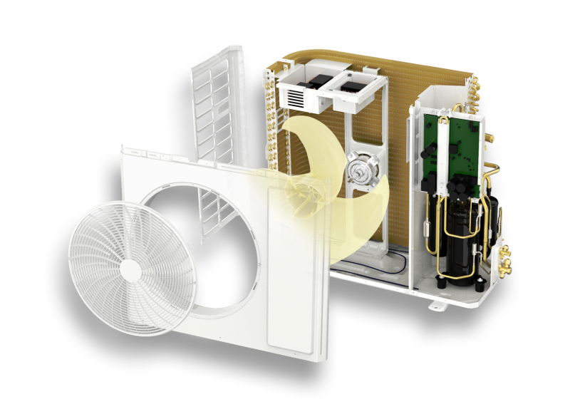 O algoritmo de inteligência artifi cial da GREE ajusta dinamicamente a interação dos componentes internos da unidade exterior de acordo com o ambiente de instalação da máquina.